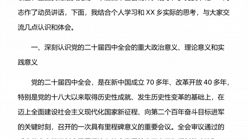 在XX乡学习贯彻党的二十届四中全会精神宣讲会上的宣讲报告