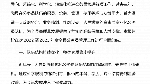 县委组织部关于2022-2025年度全县公务员管理工作的总结报告