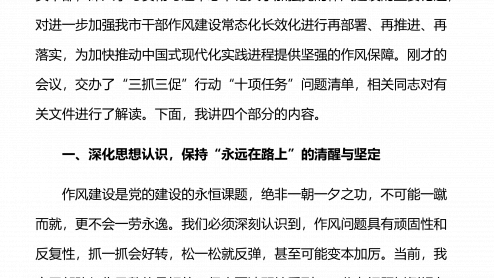 在进一步加强干部作风建设常态化长效化推进部署会上的讲话