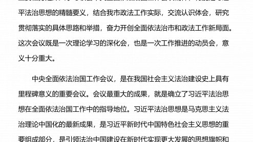 在集体学习中央全面依法治国工作会议精神研讨交流会上的讲话